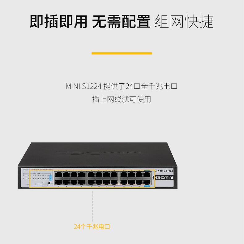 H3C華三Mini S1224 24口全千兆交換機(jī)企業(yè)級無管理非網(wǎng)管網(wǎng)絡(luò)交換器監(jiān)控防雷分線器替代S1324G